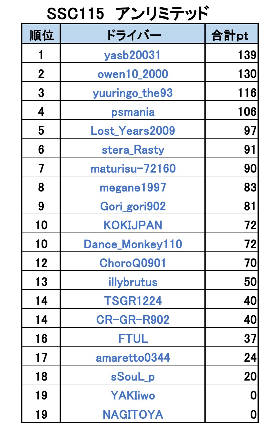 yasb20031選手はこれでSSC2025シリーズ6戦中5勝目!今シーズンも終盤に来て、前人未到の年間ランキング3連覇に向けてSREXのラフダイヤモンドの快走が続きます