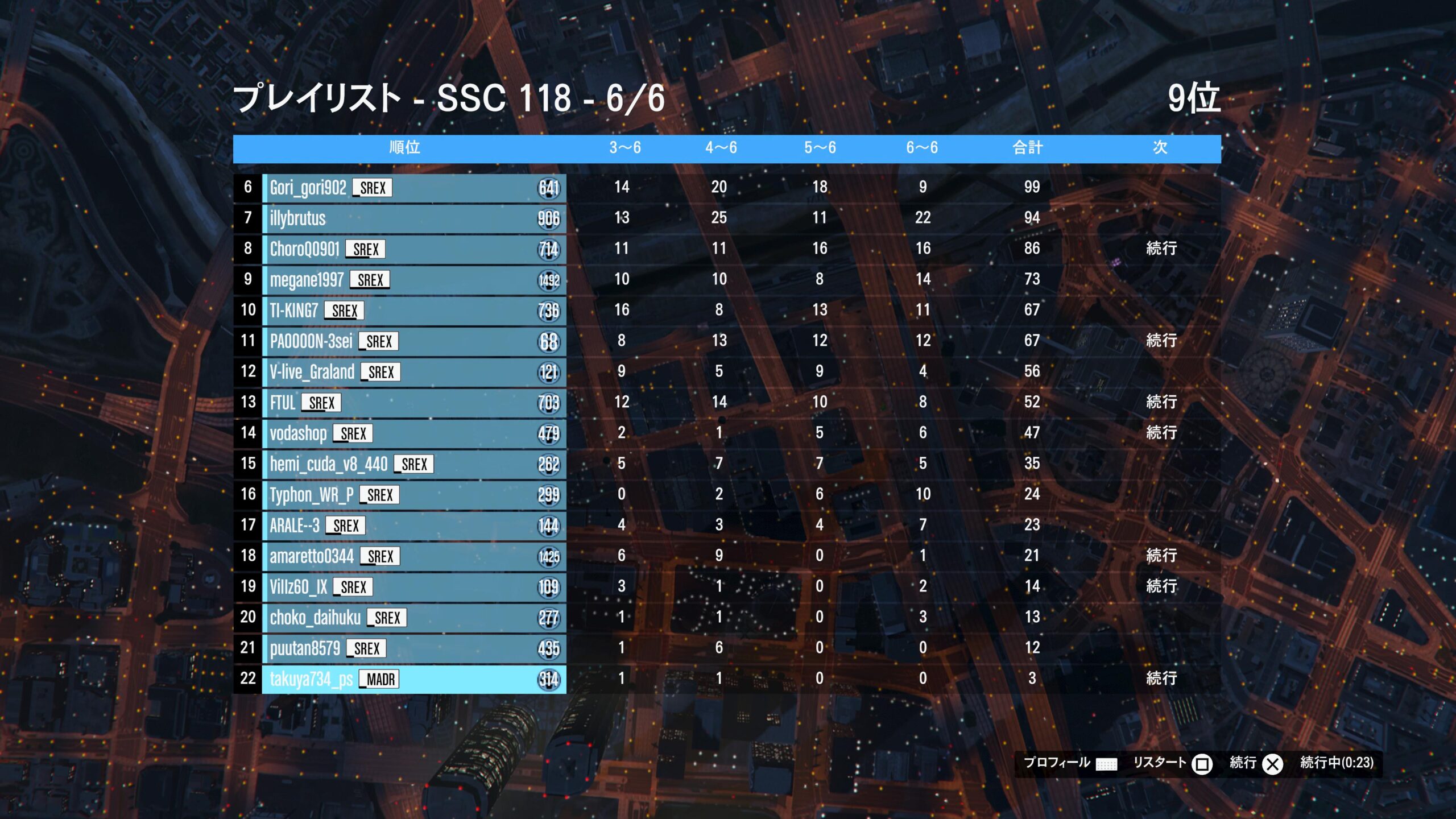 2位には前年までSSCシリーズランキング3連覇の絶対王者“ラフダイヤモンドド”yasb20031選手。5レース目終了時点で1勝して総合1位に立ち、さすがの強さを魅せた絶対王者。最終レースの2位で惜しくも逆転は許したものの、やはり今年もその安定感は目を見張るものがあります。今シーズンも年間王者争いの軸になるのは間違いなし